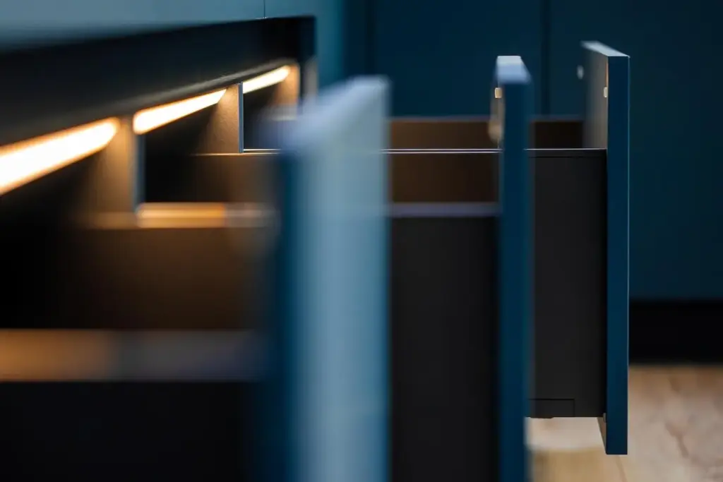 扉裏に フェルトや コルクを 仕込み 衝撃音を 吸収します。 棚の 奥行きに 合わせた ベロアの ライナーは 指の 動きに 優しく フィットし 高級感と 実用性を 同時に 提供します。 触覚の層は 心を 落ち着かせます。 開閉時の 微細な 音を 減らすことで 夜の作業も 気兼ねなく 行え 家族の 休息が 守られます。 小さな配慮が 暮らし全体の 質を 高めます。